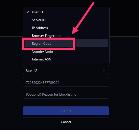 Choose an identifier to block or ban Discord accounts by:- User ID (default): Blocks a specific Discord account by its unique User ID.