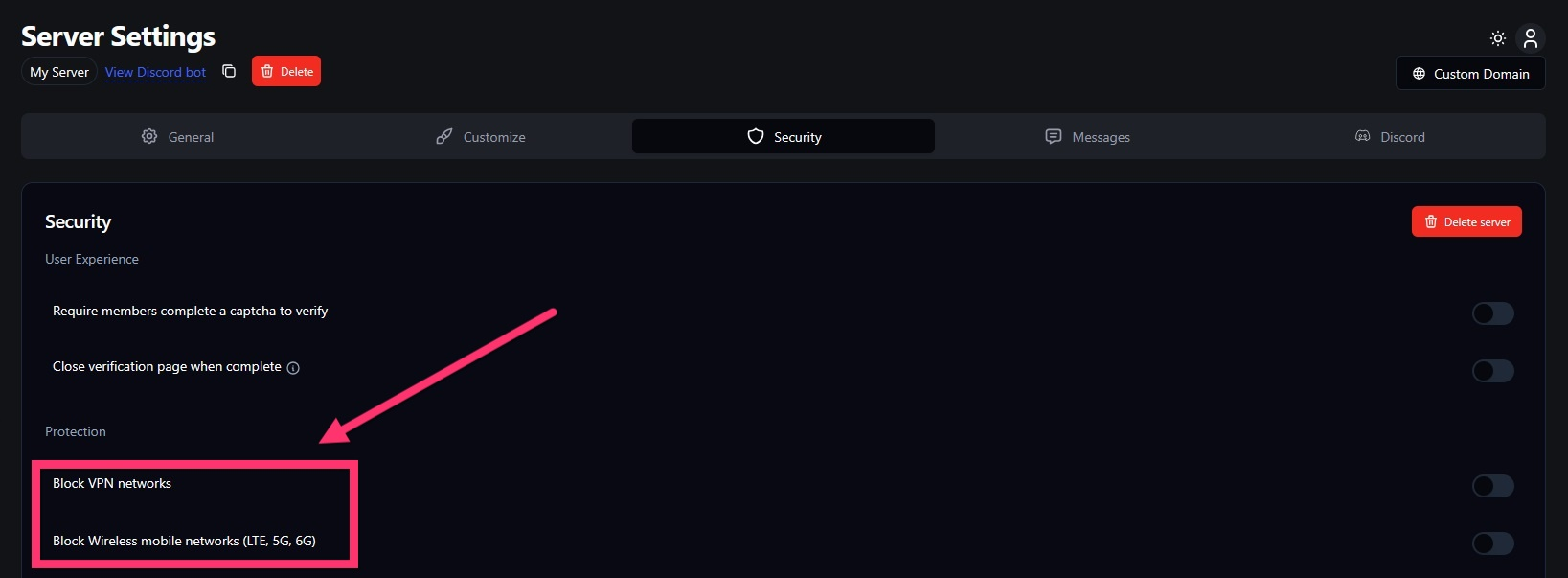 VaultCord accurately detects VPN and proxy users, with almost zero false positives—much better than typical digital software platforms. We also reliably identify Canadian VPNs, which many competitors can’t do. Our wireless mobile check blocks users on LTE or 5G data, but it’s less accurate than our VPN detection. Since some providers (like T-Mobile and Starlink) offer both mobile and home internet, we recommend allowing users detected on such networks to join, as cellular detection may not be precise in these cases.
